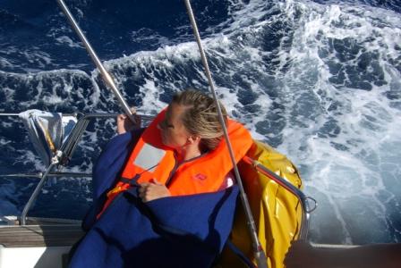 Hege(og Edvard:) prøver å finne roen da båten krenger som mest...