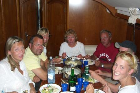 VELDIG godt med skikkelig hjemmelaget mat etter 10-11 timer til sjøs. Dette var også dagen med høyeste båtfart, 10,5 knop på det "værste":))