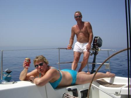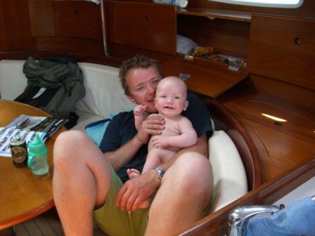 Koser seg under dekk - der det er litt svalere. Ihvertfall når vi er ute til sjøs!