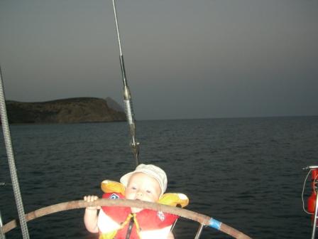 Førstereisegutten prøver seg som rormann:))