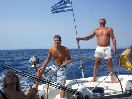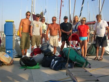 En godt fornøyd gjeng leverer sin Beneteau First 47.7 i marinaen på Kos.