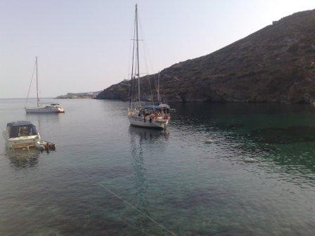 Klar for landgang i lille og kjempekoselige "Faros", vest på øya Sifnos.