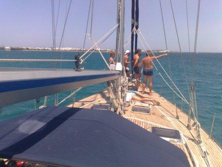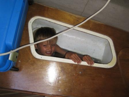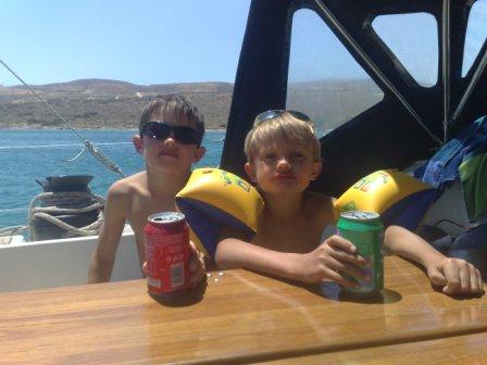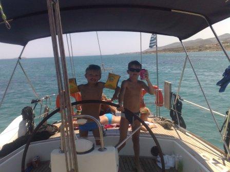 Når vi nærmet oss land fikk vi besøk ombord av Tinius og Oliver. Begge er allerede ivrige matroser:)